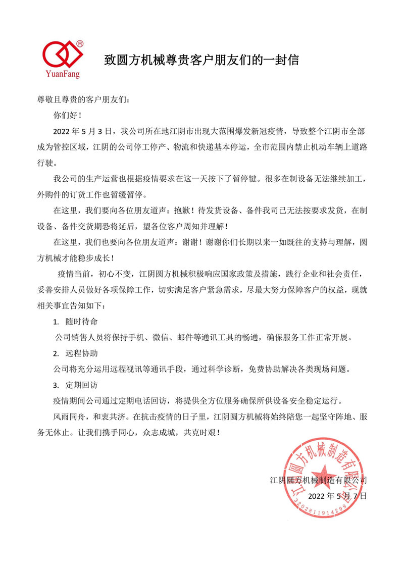 致圓方機(jī)械尊貴朋友們的一封信